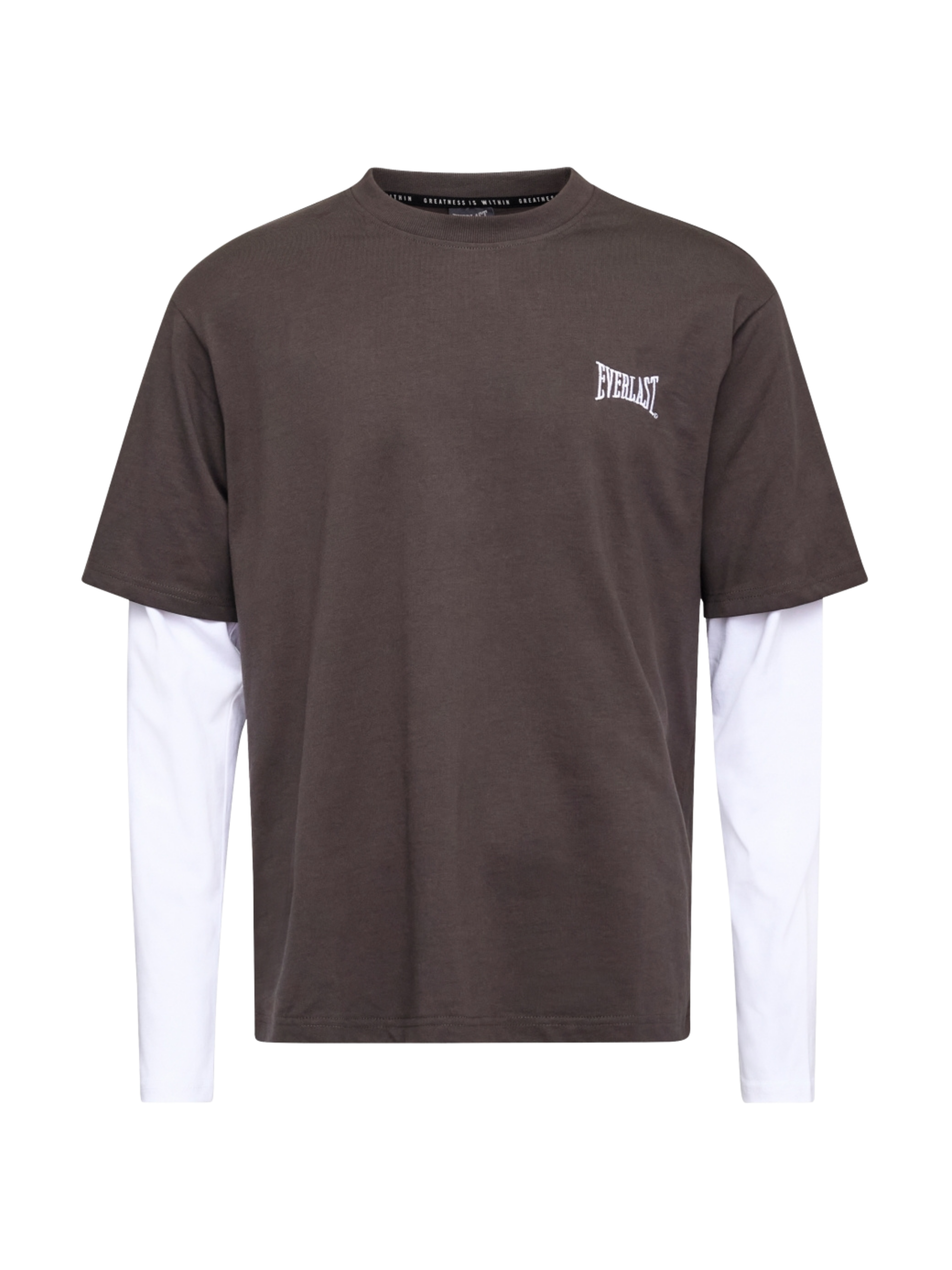 Kortærmet T-shirt med layered look og et råt, grafisk udtryk. Kontrastærmer giver dybde, mens printet på ryggen trækker klare referencer til Everlasts heritage. Street. Ren attitude.