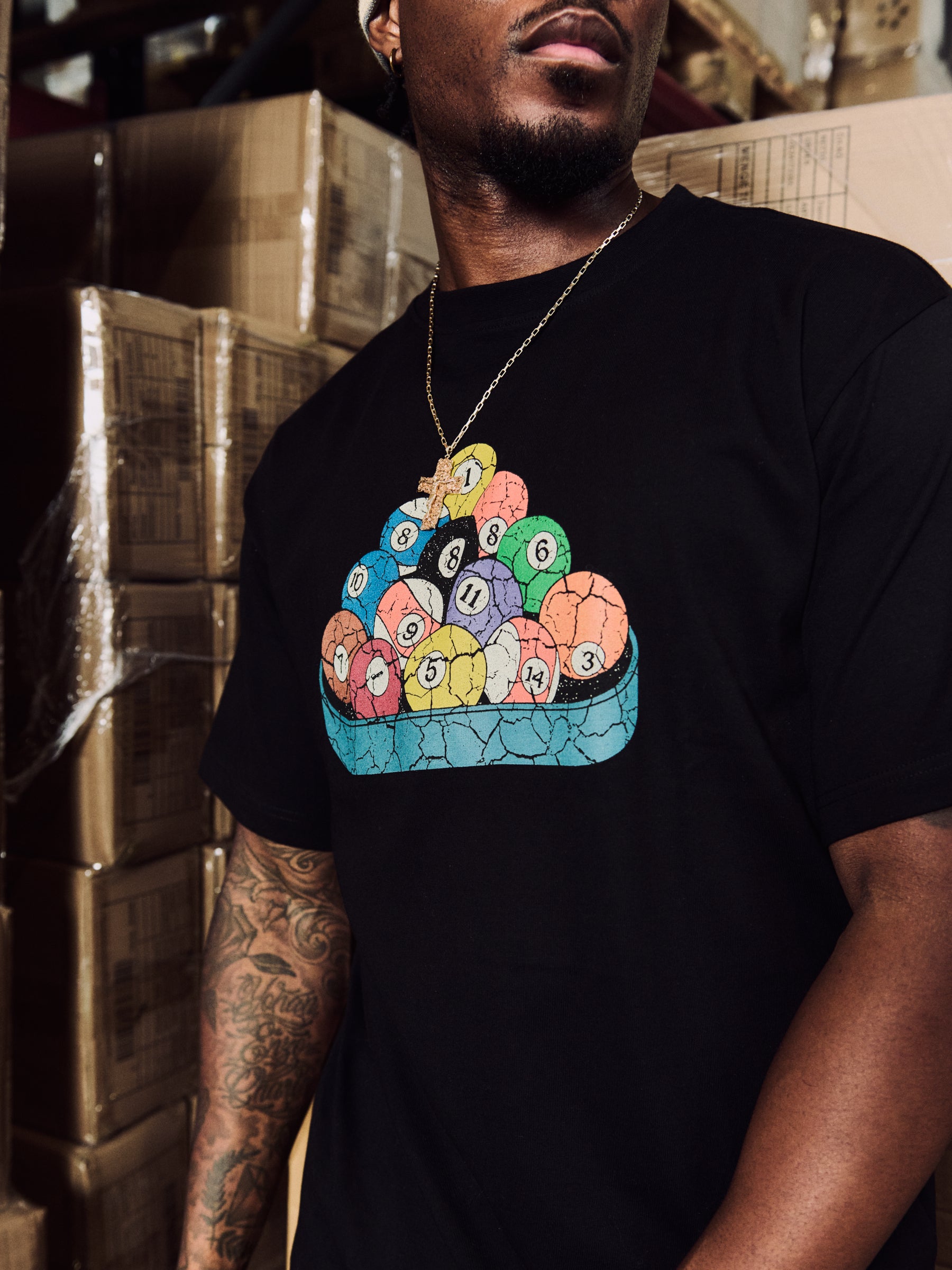 • The “Pool Tee” is a black heavy box fit cotton tee featuring retro pool graphic at the front with Everlast logo integrated into the artwork. Made from heavyweight cotton and cut for a relaxed, boxy fit.