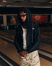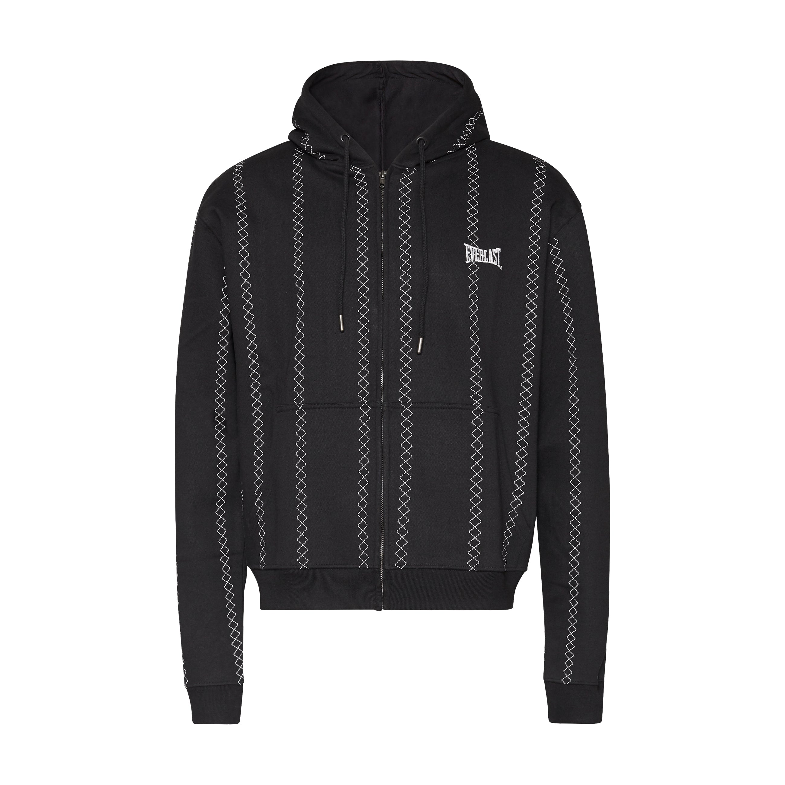 The ‘Zip-It’ Hoodie fra FOREVERLAST er en kraftig zip-hoodie i sort bomuld med gennemgående lynlås. Designet er afsluttet med et karakteristisk horisontalt stikningsmønster og et rent, funktionelt udtryk.